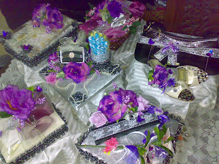 ~ 9 DULANG: RM580 = Gubahan hantaran dan hiasan bunga/reben/manik/renda, RM490 + dulang dan kain alas RM90